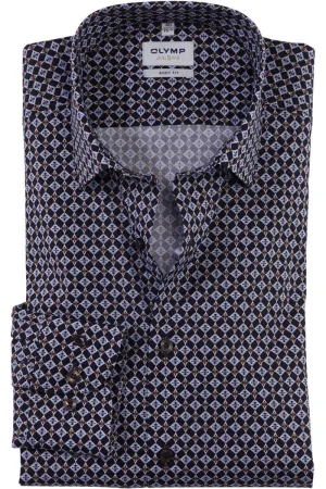 OLYMP Level Five Overhemd blauw/bruin, Motief