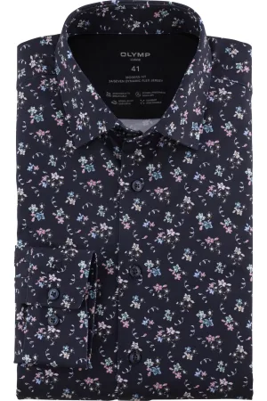 OLYMP Luxor 24/Seven Jersey shirt marine, Bedrukt