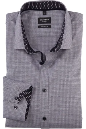 OLYMP No. Six 24/Seven Overhemd grijs, Motief