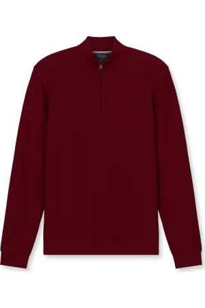 OLYMP Casual Half-Zip Sweater donkerrood, Gestructureerd
