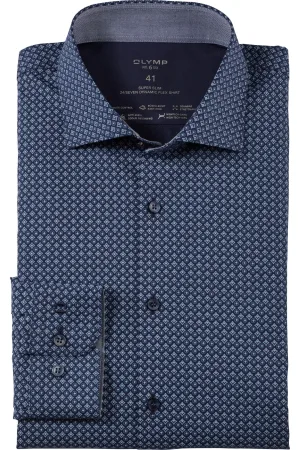 OLYMP Luxor 24/Seven Overhemd blauw, Bedrukt
