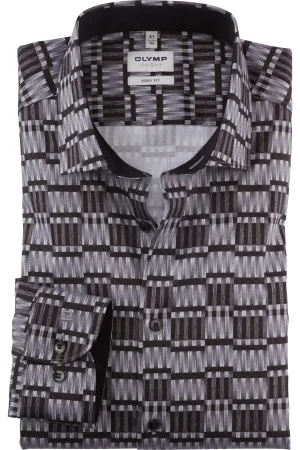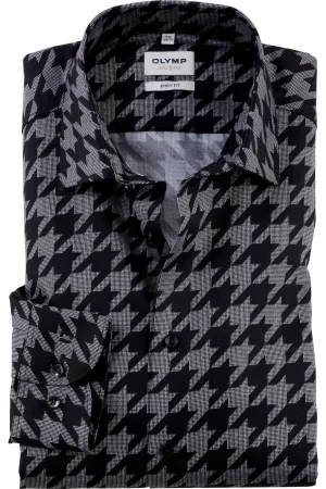 OLYMP Level Five Overhemd zwart, Bedrukt