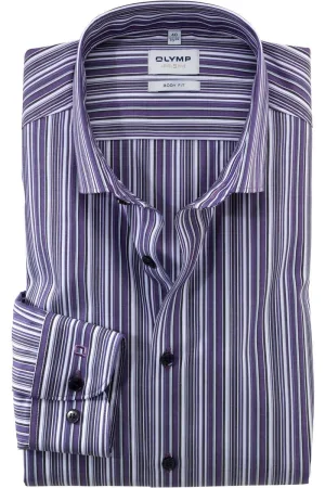 OLYMP Level Five Body Fit Overhemd altviool, Gestreept