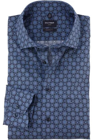 OLYMP Luxor 24/Seven Overhemd marine, Bedrukt