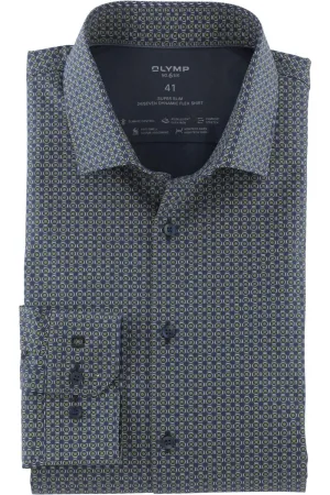 OLYMP No. Six 24/Seven Super Slim Overhemd blauw, Motief