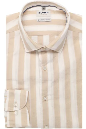 OLYMP Level Five Garment Washed Overhemd natuurlijk, Gestreept