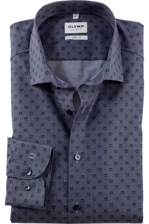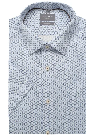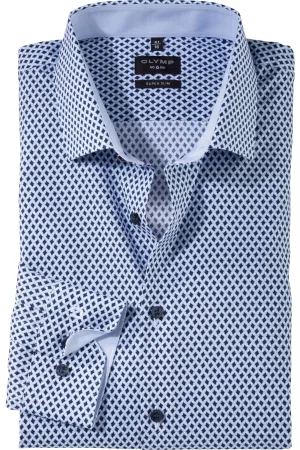 OLYMP No. Six Overhemd blauw, Bedrukt