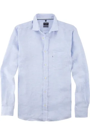 OLYMP Casual Linnen Overhemd blauw, Gestreept