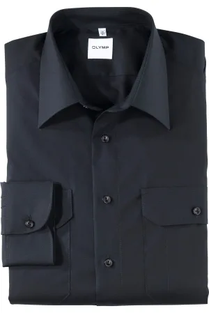 OLYMP Level Five 24/Seven Overhemd zwart, Herringbone