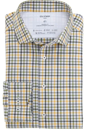 OLYMP Luxor 24/Seven Dynamic Flex Modern Fit Jersey shirt Maïs/groen, Ruit