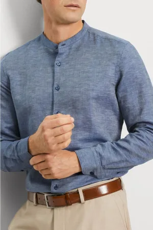 OLYMP Level Five Garment Washed Linnen Overhemd marine, Faux-uni