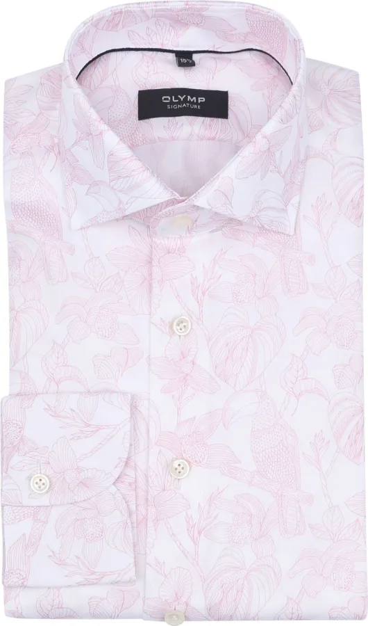 OLYMP Luxor Performance Climate Control Overhemd wit, Bedrukt
