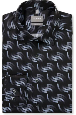 Olymp Luxor Overhemd Pied De Poule Zwart