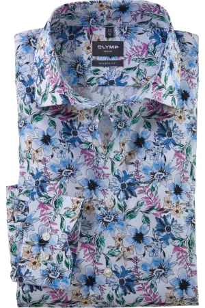 OLYMP Level Five Body Fit Overhemd blauw/roze, Motief