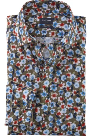 OLYMP Luxor Overhemd lichtgroen, Bloemen