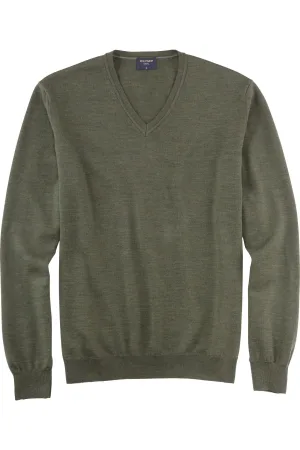 OLYMP Casual Trui V-hals olijf, Effen