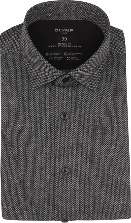 OLYMP Luxor Overhemd 24/Seven Print Antraciet