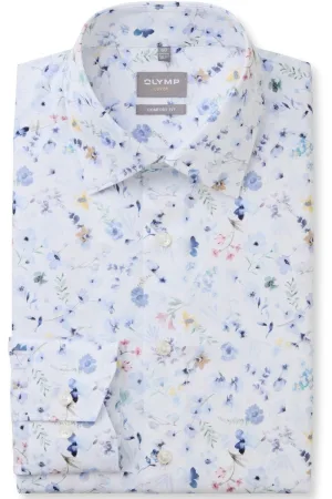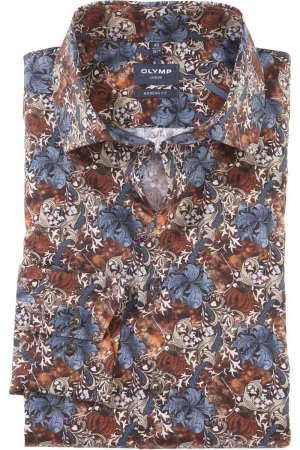 OLYMP Luxor Overhemd blauw/bruin, Bloemen