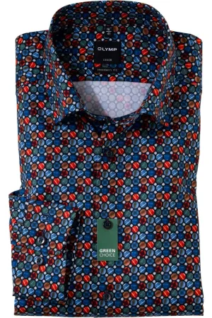 OLYMP Luxor Modern Fit Overhemd blauw/rood, Motief