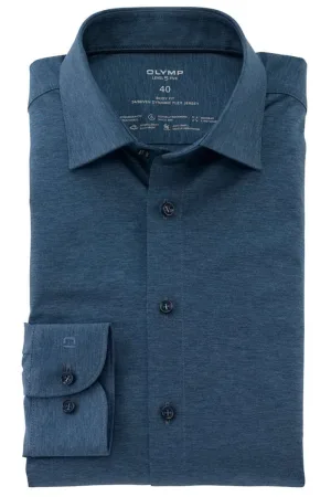 OLYMP Level Five 24/Seven Body Fit Jersey shirt rook blauw, Effen