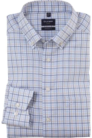 OLYMP Luxor Modern Fit Overhemd ML6 (vanaf 68 CM) blauw/bruin