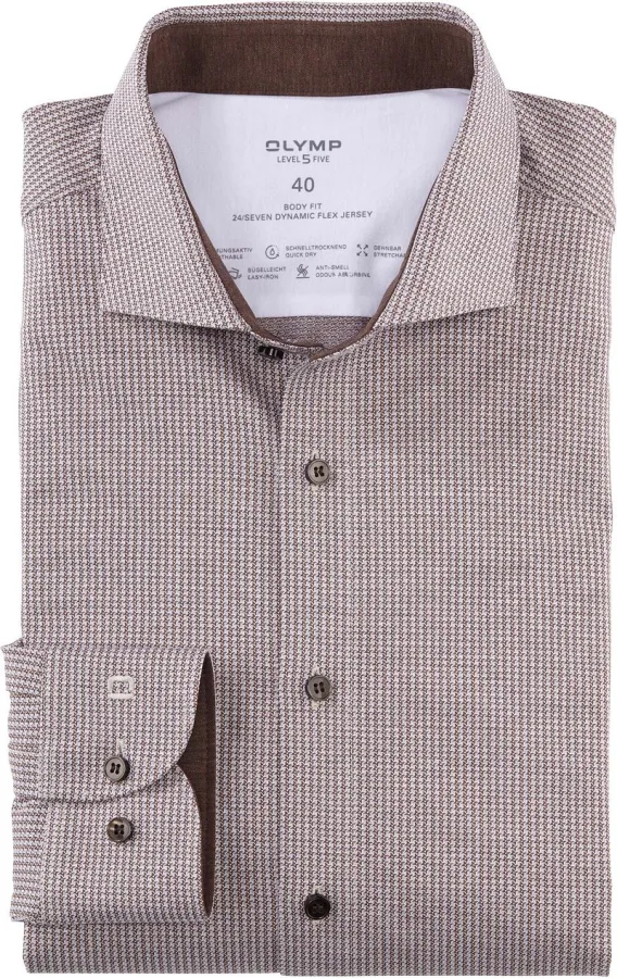 OLYMP Overhemd Level 5 24/Seven Pied de Poule Bruin