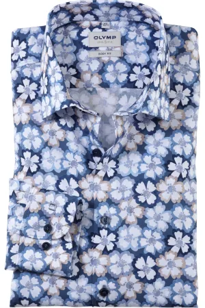 OLYMP Level Five Overhemd blauw, Bedrukt