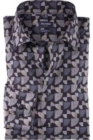 OLYMP Level Five Overhemd zwart, Bedrukt