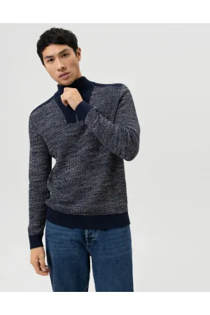 OLYMP Casual Half-Zip Sweater marine, Gestructureerd