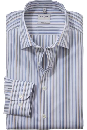 OLYMP Level Five Overhemd rook blauw, Gestreept