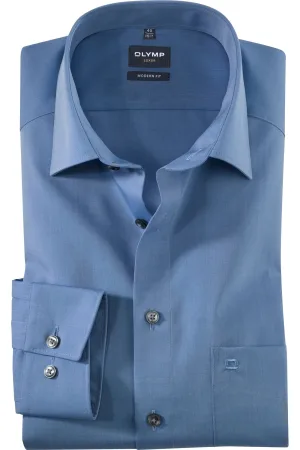 OLYMP Luxor Overhemd blauw, Effen