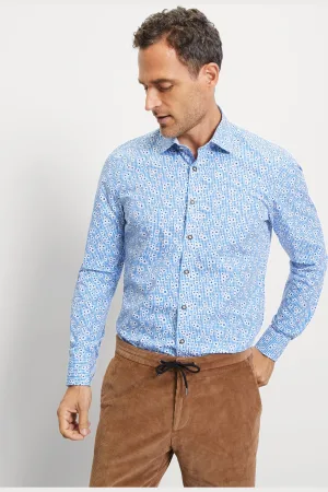 OLYMP No. Six Overhemd blauw, Bedrukt