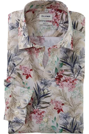 OLYMP No. Six Overhemd natuurlijk, Bedrukt