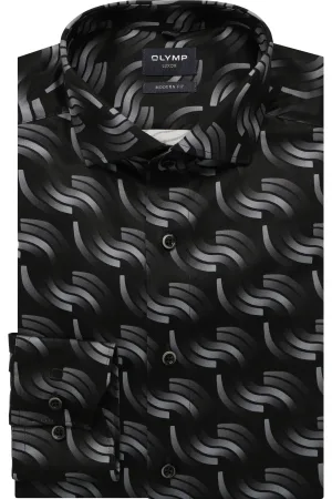 OLYMP Level Five Body Fit Overhemd rook blauw, Motief