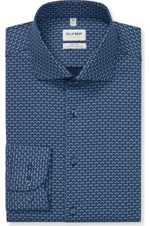 OLYMP Level Five Performance Climate Control Overhemd marineblauw/wit, Motief