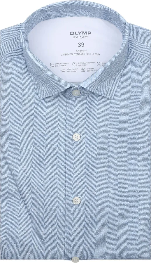 OLYMP Overhemd Level 5 24/Seven Herringbone Blauw