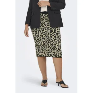 ONLY CARMAKOMA kokerrok met panterprint gebreid zwart