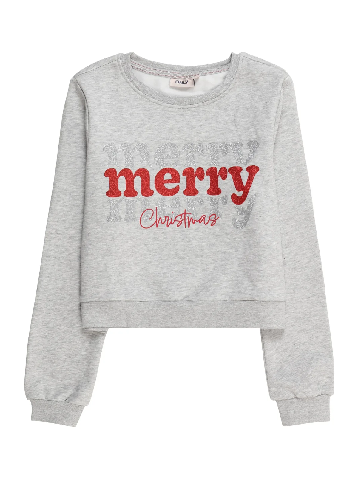 ONLY GIRLS Sweatshirt ‘KOGNORA’ grijs gemêleerd / rood / zilver