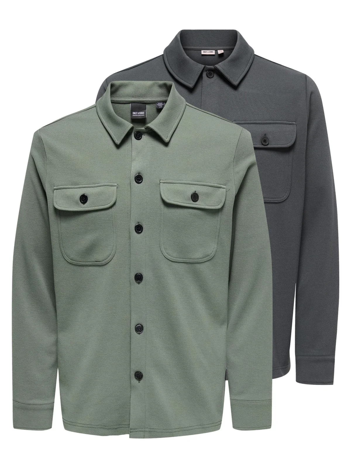 ONLY & SONS corduroy casual overhemd grijsgroen