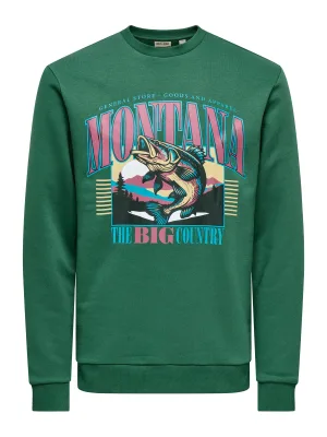Only & Sons Sweatshirt ‘ONSTEN’ jade groen / oranje / zwart