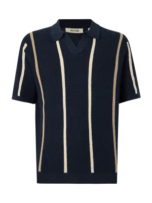 V-Neck Cotton Knitwear with Short Sleeves – Black Polo Shirts