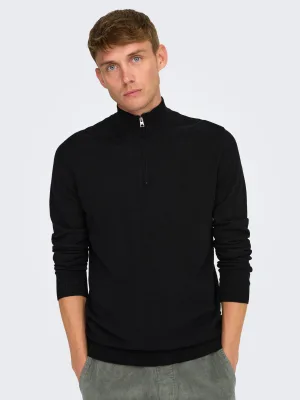 Only & Sons Mace Herringbone Knit Half Zip Sweater Heren