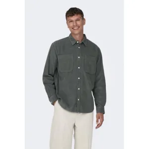 ONLY & SONS corduroy casual overhemd grijsgroen