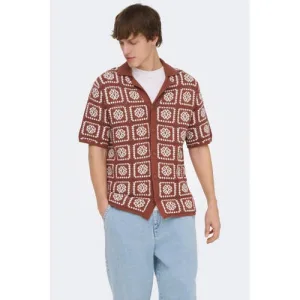 ONLY & SONS relaxed casual overhemd met ingebreid patroon brique