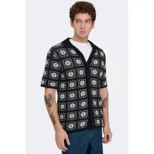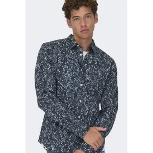 ONLY & SONS relaxed casual overhemd met ingebreid patroon donkerblauw