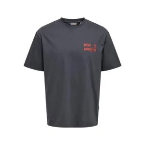 ONLY & SONS relaxed T-shirt met backprint antraciet