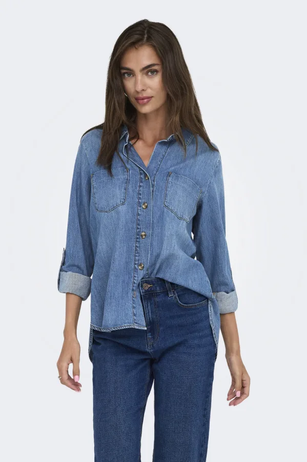 Only Loose fit overhemdblouse van puur katoen, model ‘ASUGUSTA’