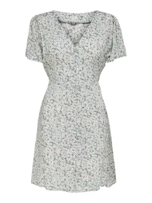Only Onlevida S/s Short Dress Wvn Noos 15237382 Zomerjurkjes Gray Mist Flower
