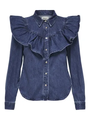 Only Female Blouses Onlindigo Ls Frill Dnm Shirt Qyt Noos