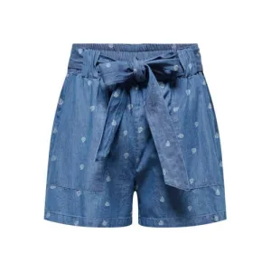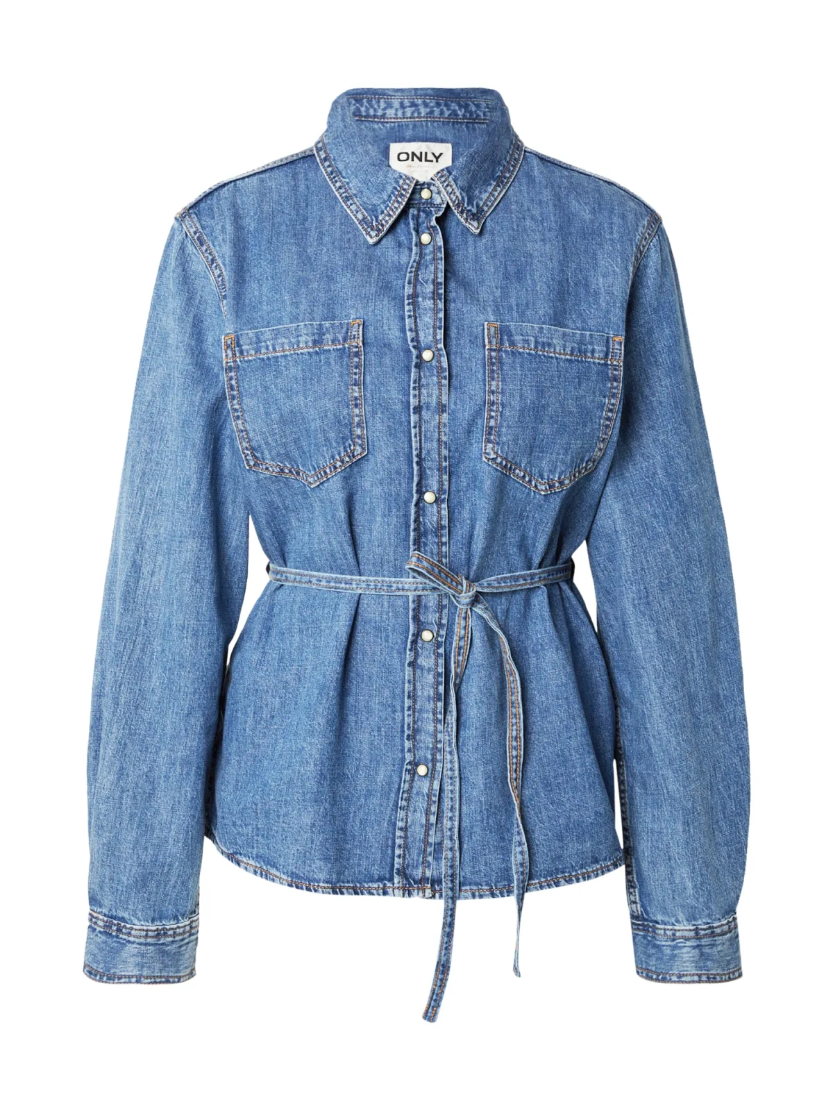 Only Blouse Onlbea Ss Bow Dnm Shirt Bj 15344257 Medium Blue Denim Dames